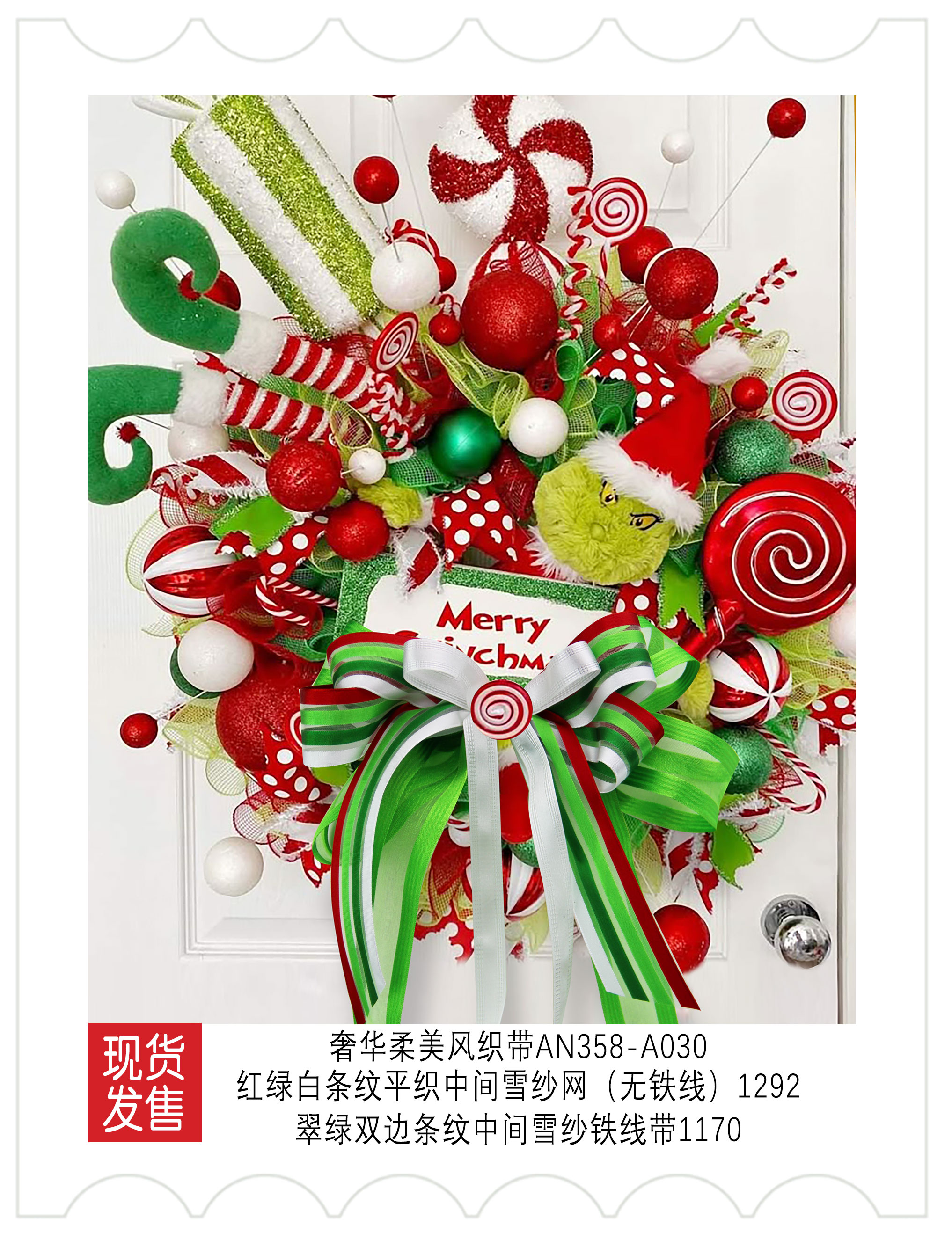2025圣诞装饰-红白绿色系织带应用