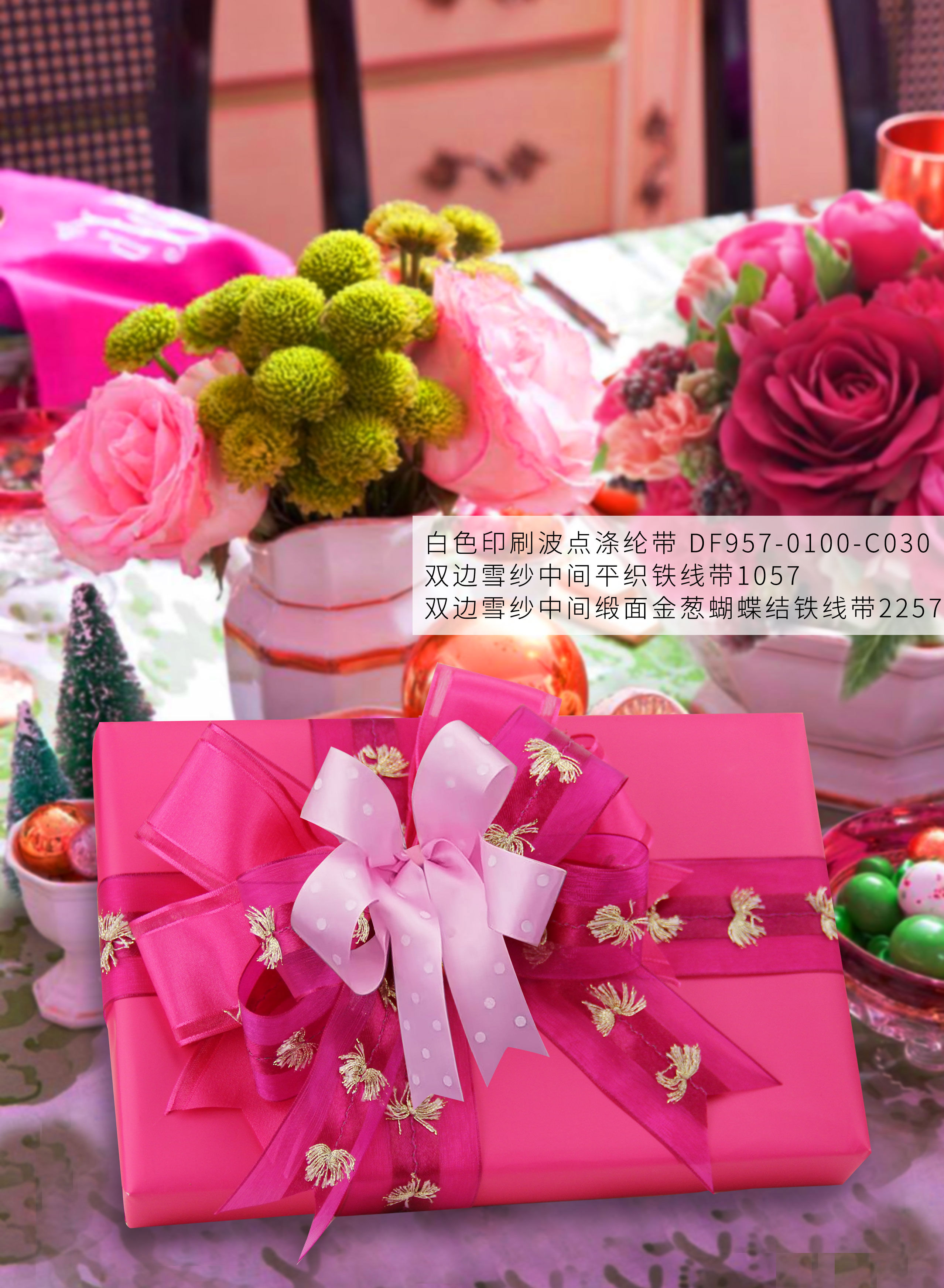 织带适用于礼品包装、服装服饰、节日装饰、家居装饰、花卉包装等。