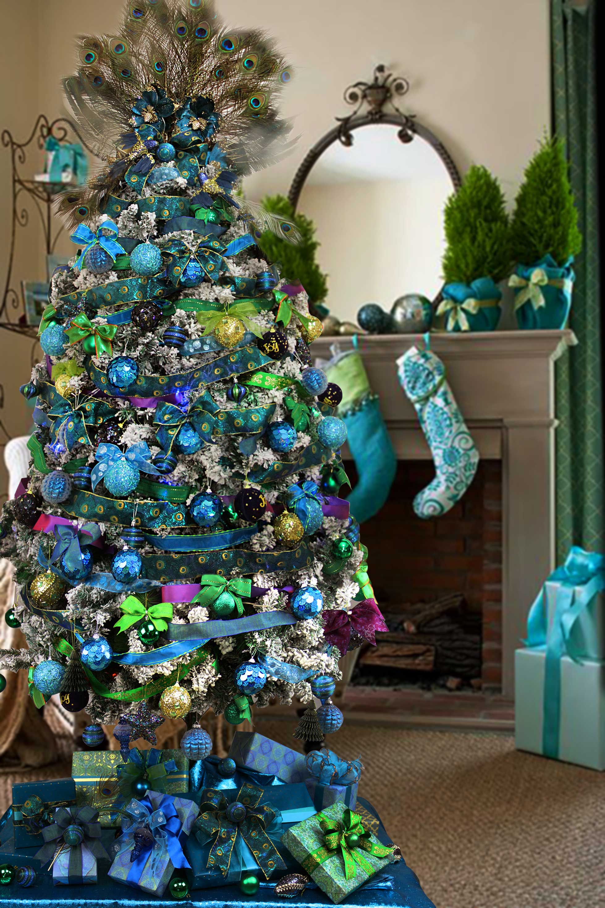 圣诞主题孔雀色调-织带搭配