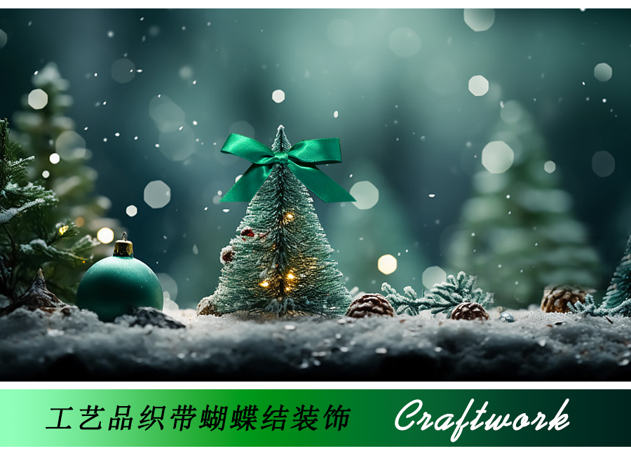 工艺品-圣诞风织带小蝴蝶结装饰(绿色系)