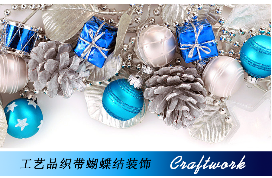 圣诞风织带蝴蝶结-蓝银色系