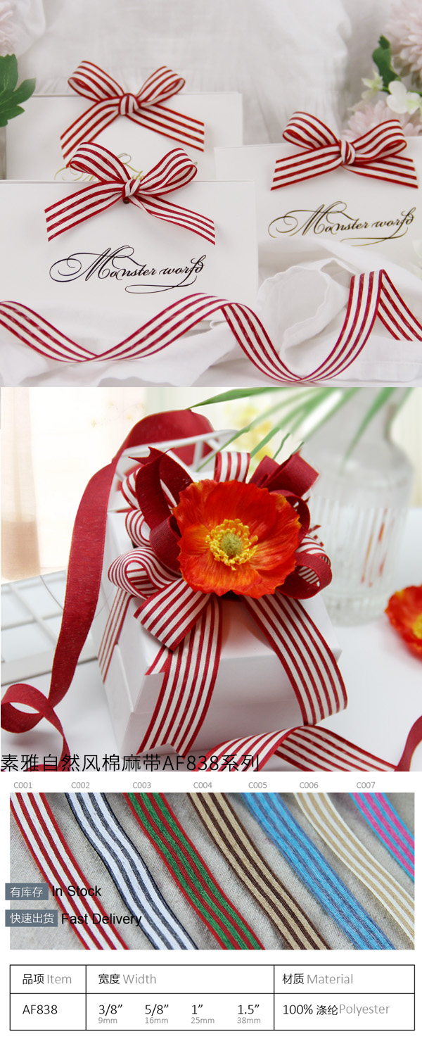 织带适用于礼品包装、节日装饰、家居装饰、花卉包装等。