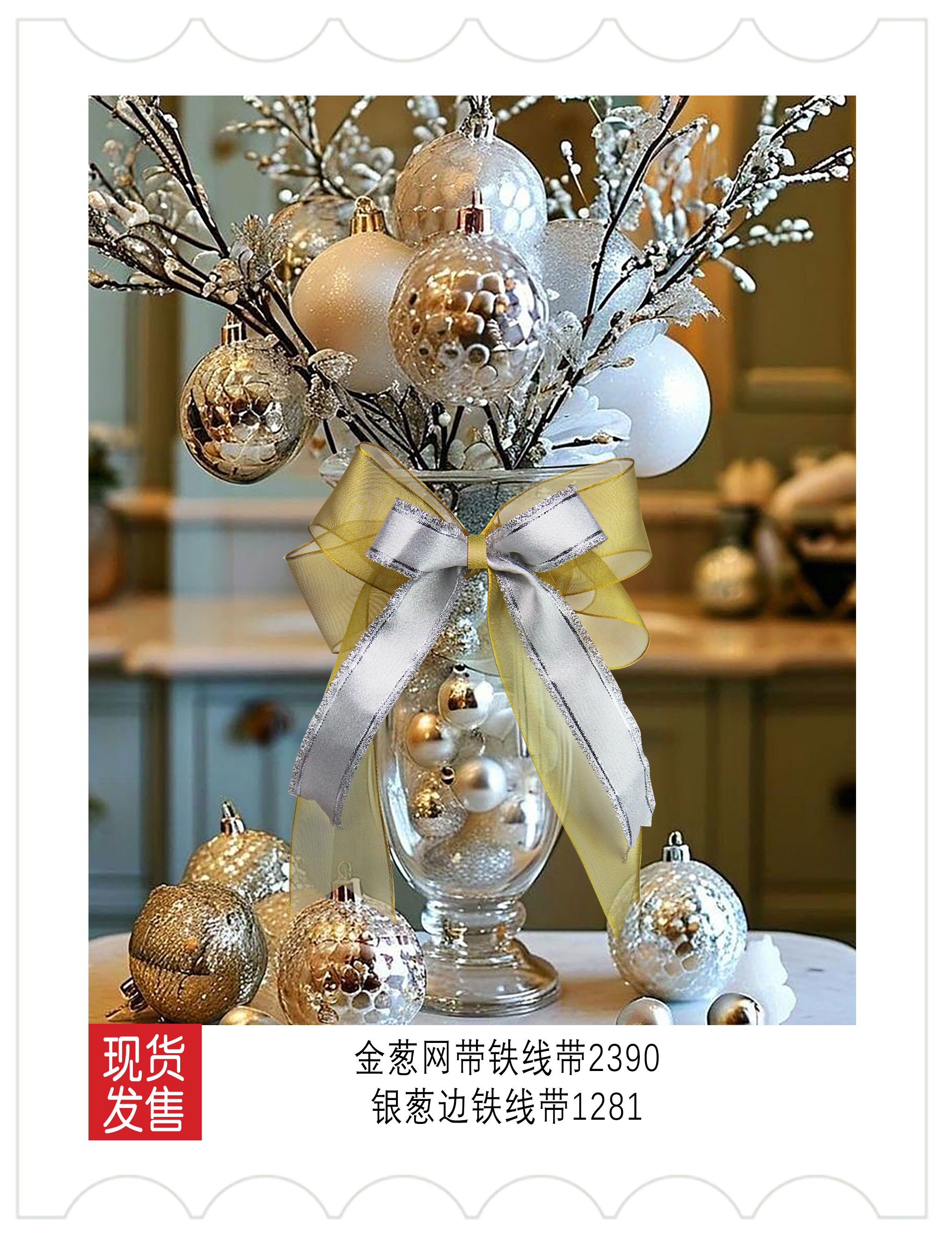 新品上市-圣诞装饰金银色系织带应用