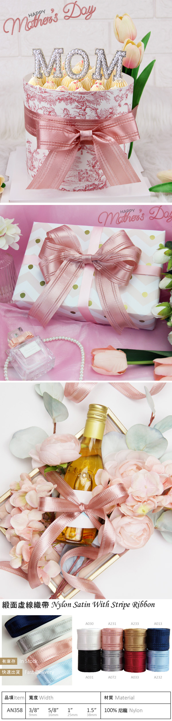Nylon Satin With Stripe Ribbon AN358-A231