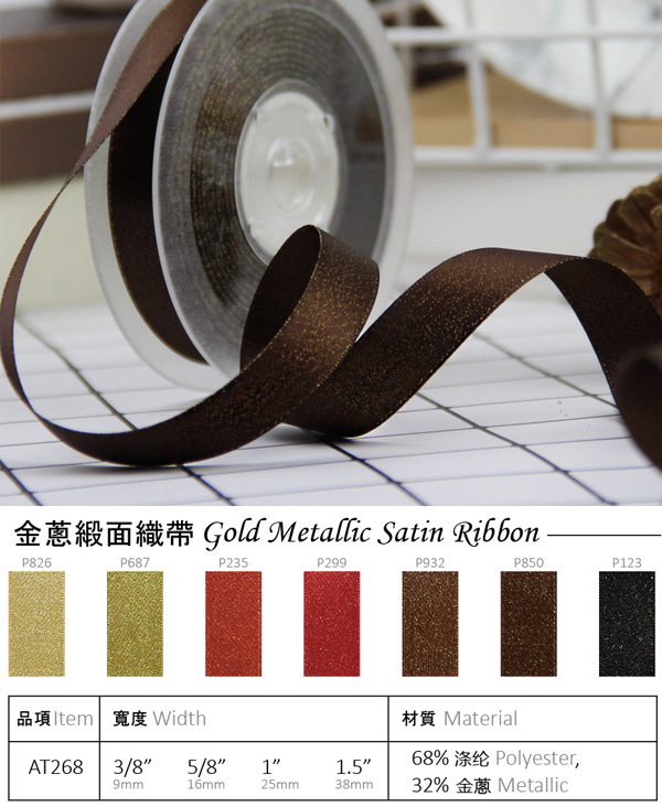 Gold Metallic Satin Ribbon AT268-P850